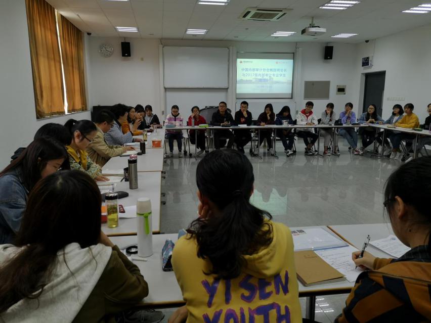 5月8日上午,中国内部审计协会鲍国明会长与2017级内部审计专业员工在敏行楼313室举行座谈,座谈会由江苏省内部审计协会副会长兼秘书长、中内协内审公司池国华经理主持,必一运动陈祖华书记、李曼副经理参加了座谈会。