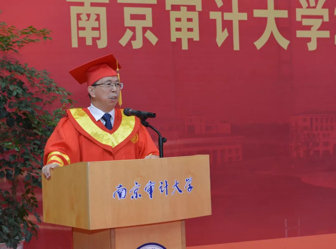 王会金副董事长寄语毕业生。希望同学们仰望星空、脚踏实地、坚守底线。毕业后仍然要有理想、有梦想、有目标、严要求;要有责任心、不断坚持、吃苦奋斗、付诸行动;要坚守做人的底线、职业底线、审计人的底线。