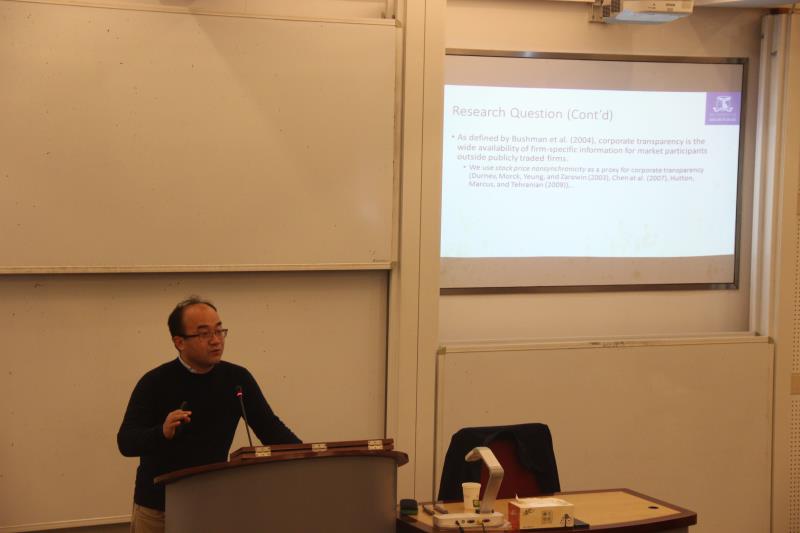 袁清波从东旭光电和东旭蓝天两支异常股票切入,认为股票透明度对于资本市场而言十分重要,引出讲座研究的主题——股票市场开放是否提高了股价信息含量,研究对象为沪港通中投资者购买的上海A股股价,并给出研究结论:开放股票市场可以优化公司信息披露环境,提升股价信息含量,并通过股价变化反映结果,对提高公司透明度、研究政治因素对股票市场自由度的影响具有重要意义。