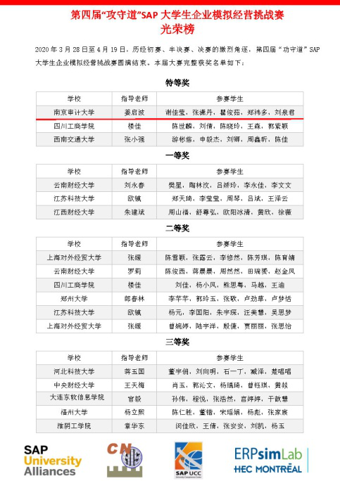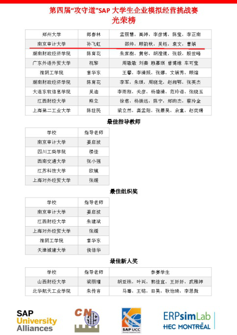 “攻守道” SAP老员工企业模拟经营挑战赛是由国际信息系统学会中国分会(CNAIS)和SAP大学联盟主办,北京交通大学承办的面相全国高校在校员工的商业模拟竞赛,旨在参赛员工能够在企业真实的管理系统中模拟企业运营,鼓励员工在商业流程与企业管理方面进行大胆探索,培养一批财会专业技能过硬,商业运营思维创新的未来人才。本届大赛吸引了全国34所高校,55支代表队参加。今年必一运动出征的两支队伍分别在全国练习赛、初赛、半决赛、总决赛阶段,和中央财经大学、上海对外经贸大学、江西财经大学、广东外语外贸大学等高校同台竞技,相互切磋,最终公司“谢广坤后援团”代表队取得总决赛全国第一名的好成绩;“与你有瓜”代表队也表现不俗,荣获大赛三等奖。