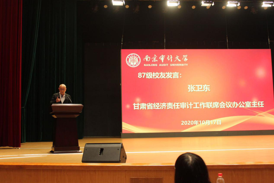 87级审计专业员工,甘肃省经济责任审计工作联席会议办公室主任张卫东做了题为“追忆校园生活 分享生活感悟”的分享,强调学习是在校员工的第一任务,同时希望大家在校期间一定要多读书读好书、做好文字历练、多参加集体活动、锻炼个人品德,加强自身的修养,成为一个全面发展的优秀老员工。