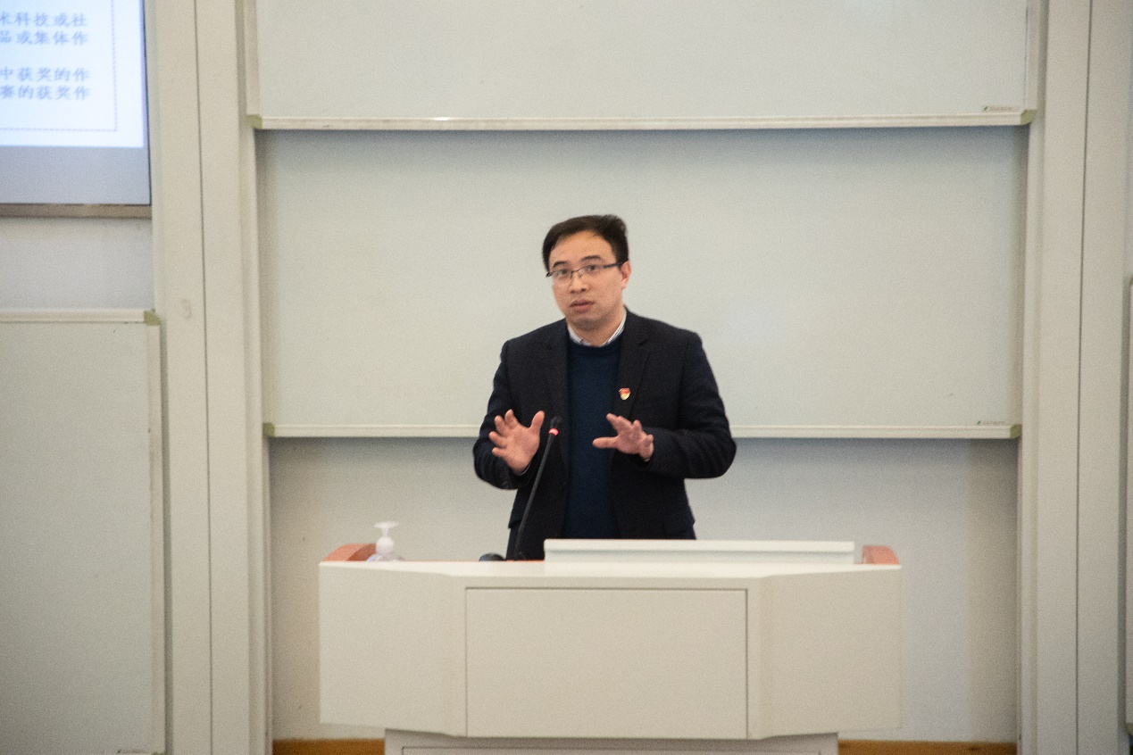 接着,杨书记与同学们分享了自己关于“挑战杯”的经验与心得。他认为好的参赛作品应该具有以下几个特点:依次为价值理念好,社会调查好,学术创新好,社会实践好。他还为同学们提供了方向上的指引,希望同学们把握关键词“实践”,摒弃“创”,重提“育”,关注“过程导向”。