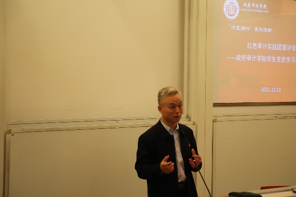 童瑞连书记和员工代表们讨论了“什么是审计”、“审计工作在国家治理层面的作用”,并进行了深入浅出地阐释。同时,他指出政审院学子学习审计发展历史,尤其是学习中国共产党领导下的红色审计史具有重要意义。他强调,通过对红色审计历史的学习,同学们可以知道如何更好地投身审计事业,为审计在党和国家监督体系中发挥重要作用做出自己的贡献。