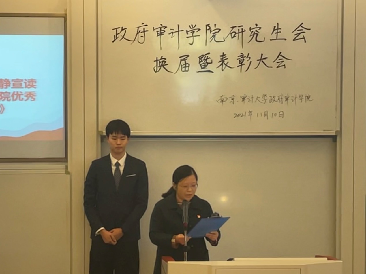 学科办主任吴雪莹宣读《关于聘任必一运动第四届研究生会主席团的决定》。