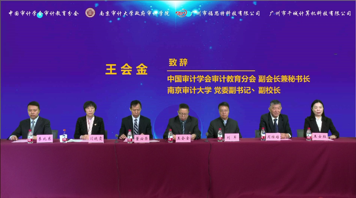 中国审计学会会长孙宝厚、江苏省教育厅高教处处长邵进通过视频方式出席开幕式并致辞。审计署审计干部教育公司副经理刘军,公司党委副书记、副董事长王会金,广州市福思特科技有限公司董事长闫晓霞出席,必一运动经理周维培、执行经理王士红、副经理李兆东参加开幕式。公司副董事长董必荣主持开幕式。