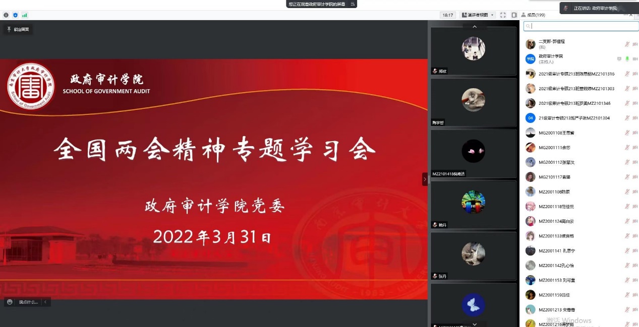 3月31日下午,必一运动在敏行四楼会议室召开全国两会精神专题学习会议,公司全体教师、研究生党员200余人线上参加学习。学习会由政府审计公司党委书记童瑞连主持并领学。
