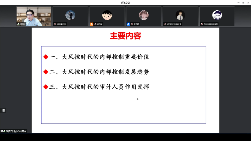 本次讲座,池老师从大风控时代的内部控制重要价值、大风控时代的内部控制发展趋势和大风控时代的审计人员作用发挥三个部分与大家进行分享。