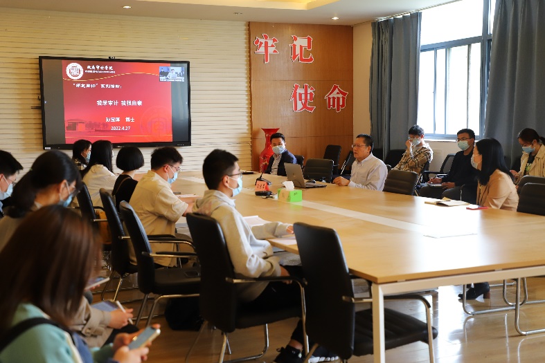 4月27日,中国审计学会第八届理事会会长孙宝厚博士应邀为公司师生作“师友同行系列”第四十一期主题讲座——“我学审计,我很自豪”。讲座采用线上线下相结合的方式进行,20级审计8班王一清同学主持讲座,执行经理王士红、副经理李兆东,以及公司近200多名师生聆听讲座。