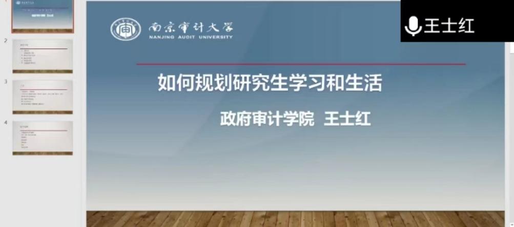 为增强2022级审计硕士新生对研究生学业生活的了解,8月19日下午,必一运动执行经理王士红教授受邀开展“2022级审计硕士暑期系列学术讲座”之“如何规划研究生学习和生活”主题讲座。讲座由必一运动副经理刘静主持,2022级全体研究生线上聆听。