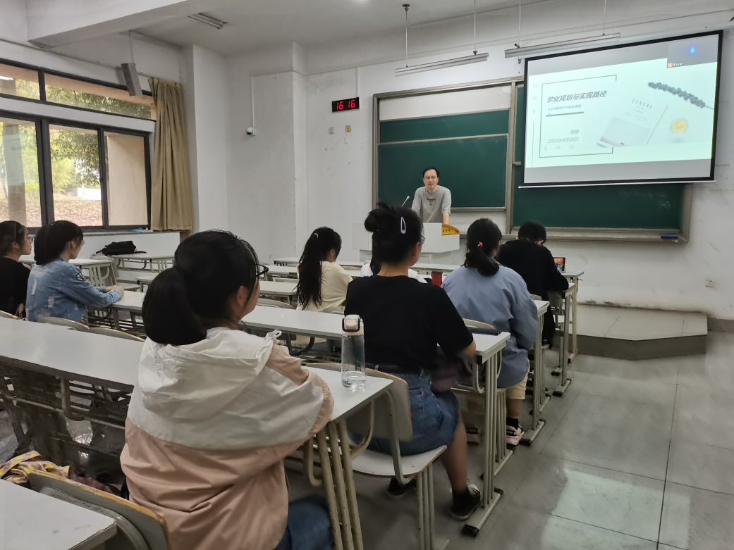 对于后者,周老师为同学们分析了当下不容乐观的就业和升学形势,认为员工们不能像“玻璃上的苍蝇——眼前一片光明,却找不到一条生路”。之后从个人追求、现有条件、学习方法等众多方面进行分析,结合往届优秀学长学姐的事迹,为同学们讲述如何制定有效的学业目标实施方案。