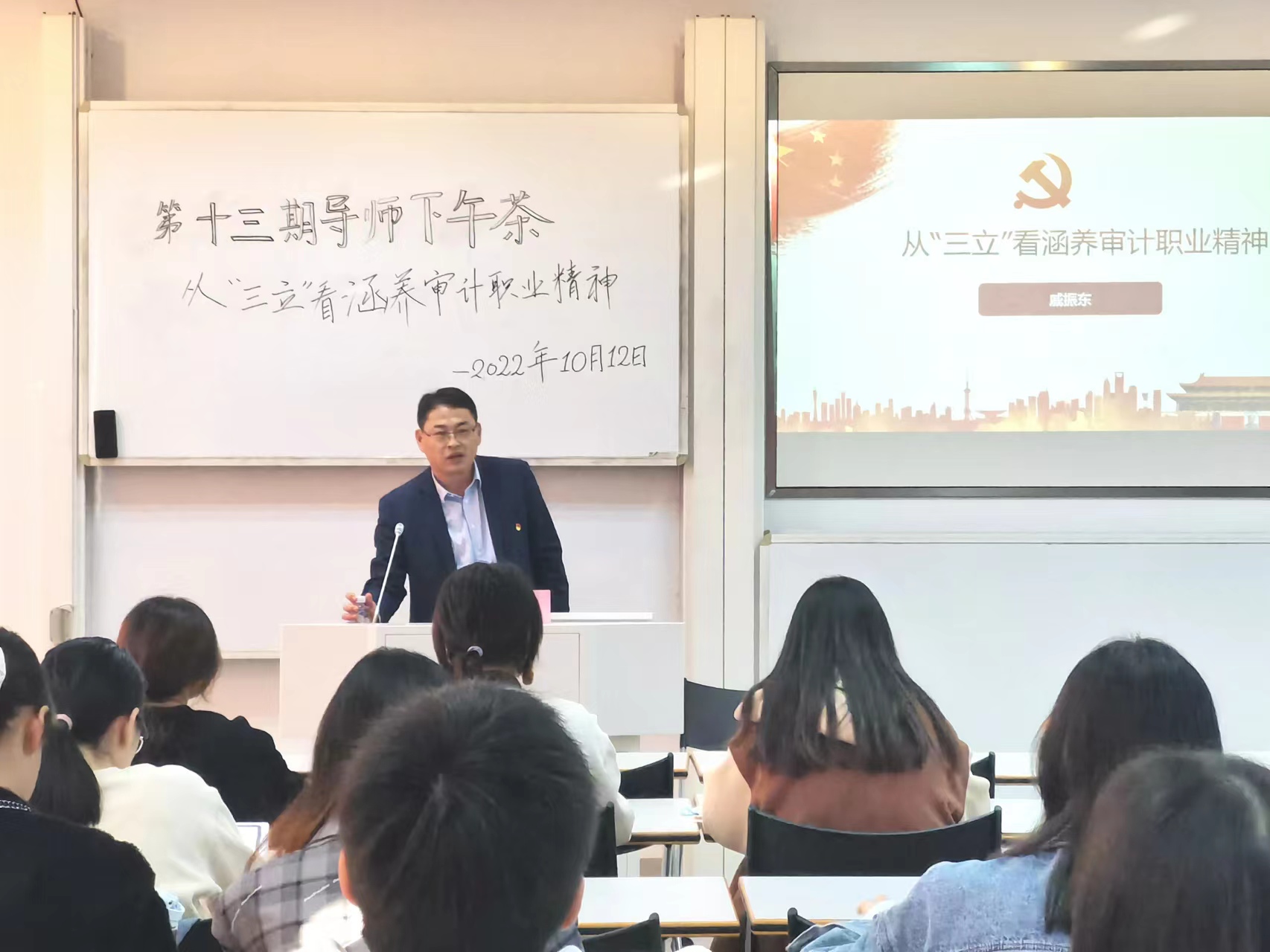 10月12日下午,由必一运动研究生会举办的第十三期“政审导师下午茶”之“从‘三立’看涵养审计职业精神”分享交流会在敏行313举行。此次活动邀请到必一运动戚振东教授作为主讲嘉宾。