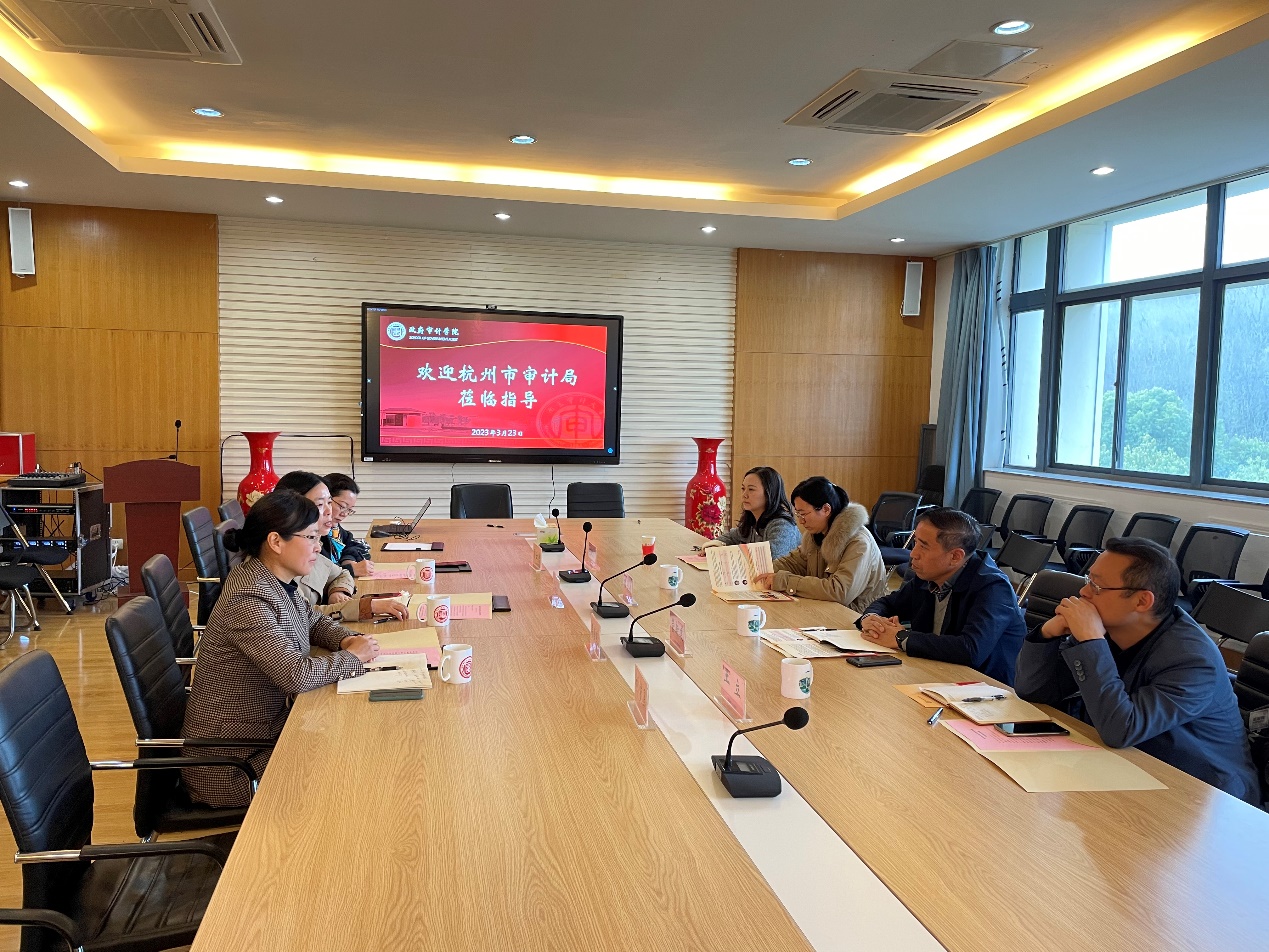 3月23日上午,杭州市审计局党组成员、二级巡视员管新建,法规和审理处处长王立,组织人事处副处长楼婧婧一行莅临公司座谈交流。政府审计公司党委书记李海燕,执行经理王士红,曾在杭州市审计局挂职的贾云洁教授、正在浙江省审计厅挂职的教师陈秋月参加座谈。座谈会由李海燕主持。
