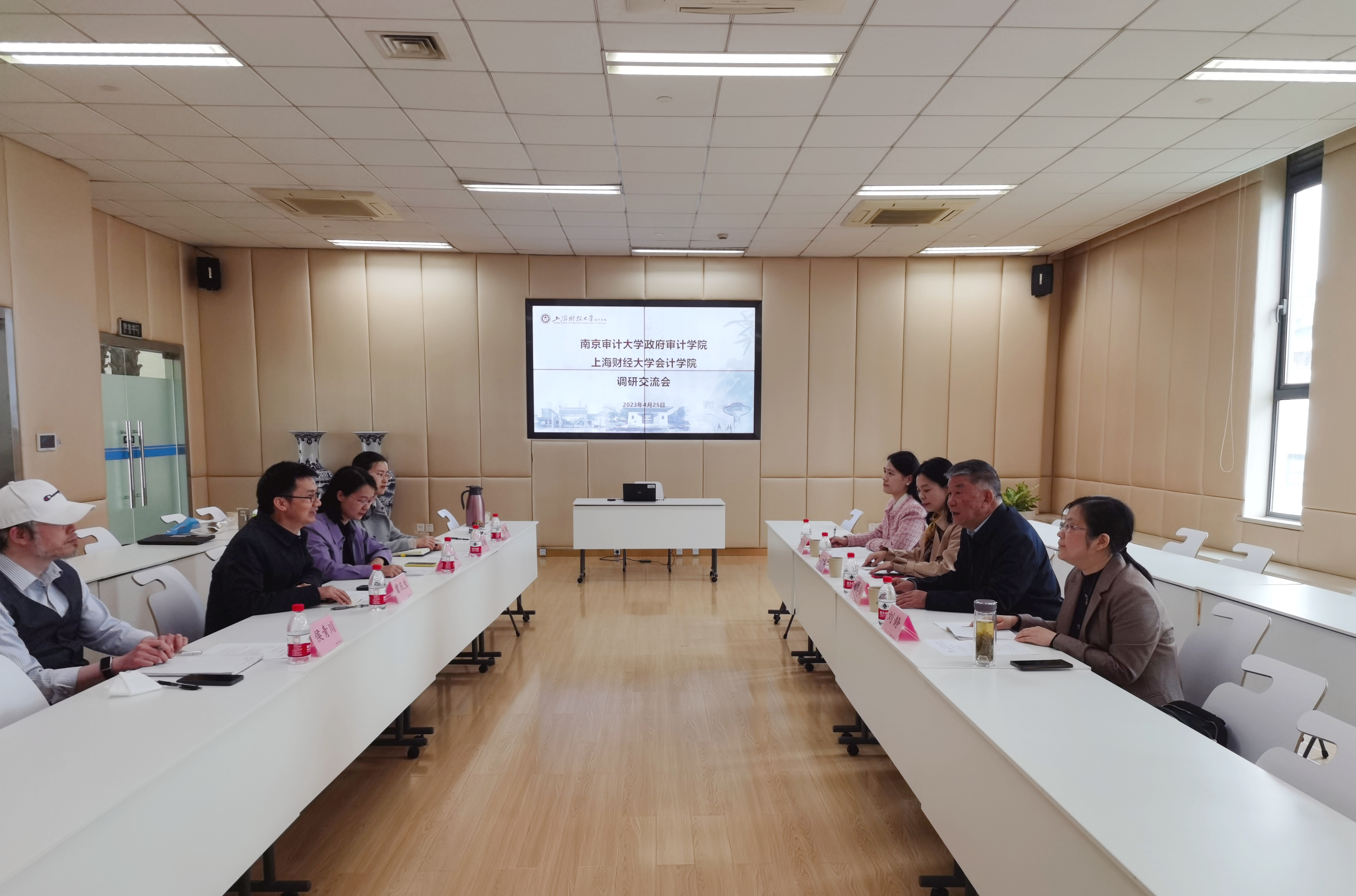 在上海财经大学会计公司,双方领导分别介绍了各自公司概况,就审计团队建设、硕博人才培养、青年教师交流等方面进行交流研讨。上海财经大学会计公司经理靳庆鲁、副经理曾庆生表示将积极推进两校合作交流,共同为中国审计学科发展添砖加瓦。