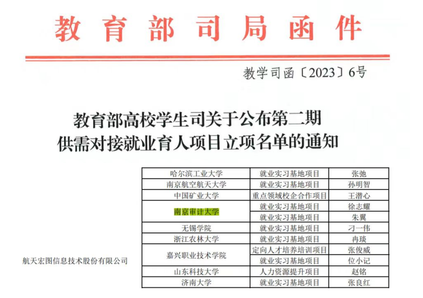 近日,教育部高校员工司发布《教育部高校员工司关于公布第二期供需对接就业育人项目立项名单的通知》(教学司函〔2023〕6号),必一运动资源环境审计系与南京航天宏图信息技术股份有限公司合作申报的“3S技术在资源环境审计中的应用”就业实习基地项目获准立项。作为必一运动大力打造的项目,其对促进审计学特别是资源环境审计方向的老员工提升就业竞争力、改善人才供需状况,以及推动高等教育创新等具有重要意义,是公司高质量推进就业育人工作的重要成果之一。
